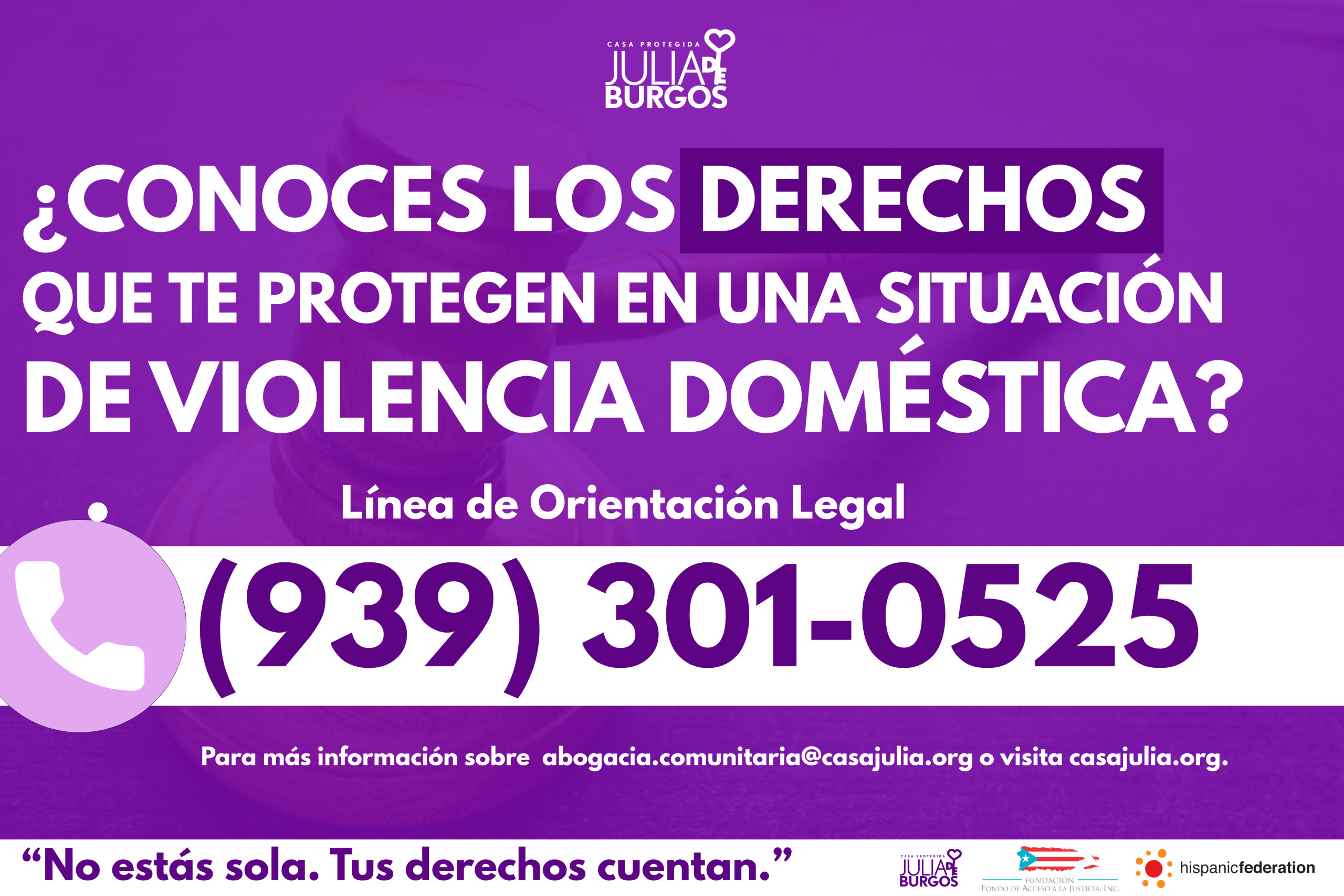 Esta línea es posible gracias al apoyo y financiamiento de la Fundación Fondo de Acceso a la Justicia y Hispanic Federation, instituciones que respaldan iniciativas dirigidas a ampliar el acceso a derechos, la seguridad y el acompañamiento legal para las comunidades del país.